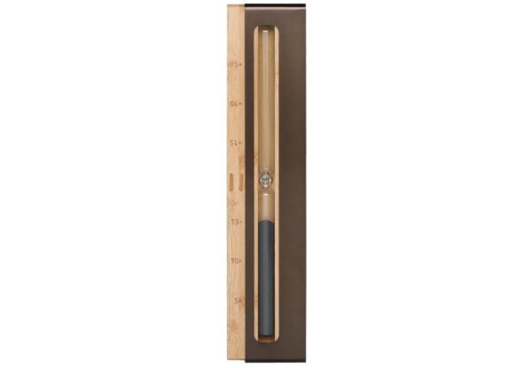 Sandtimeren er lavet af en kombination af naturligt bambus og aluminium, hvilket giver den et stilfuldt og holdbart udseende, der passer ind i enhver saunaindretning. Med en størrelse, der gør det let at læse tiden, er denne sandtimer både praktisk og æstetisk til din sauna.